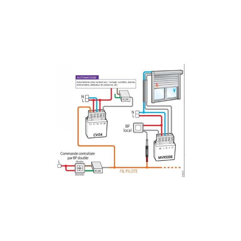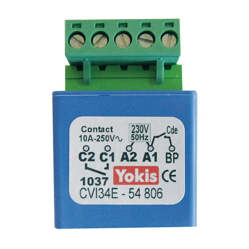 Convertisseur d’impulsions pour contact permanent le CVI34 permet le pilotage de micromodules par des automatismes à contact permanent (horloge, luxmètre, anémomètre, etc.)