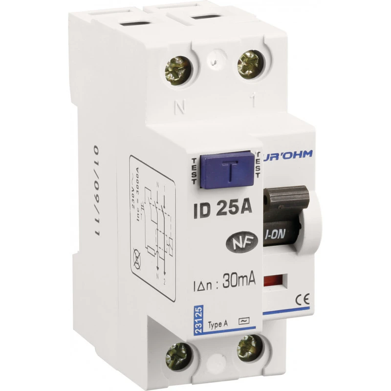 Interrupteur Différentiel 25A 1P+N 30mA Classe A Eur’ohm