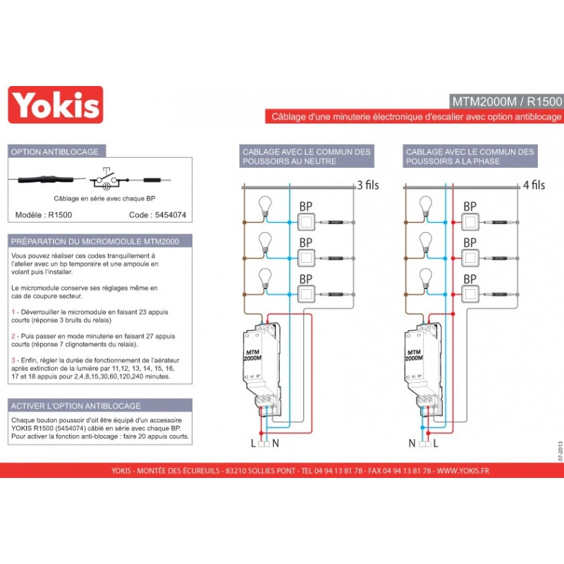 Le Minuterie antiblocage modulaire 2000w MTM2000M est compatible tous types de charges.La temporisation réglable de 2 minutes à 4 heures.