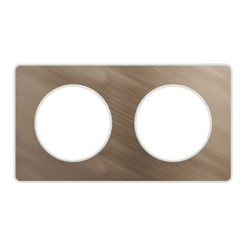 Plaque 2 Postes Horizontale/verticale 71 Mm – Bronze Brossé Avec Liseré Blanc – Odace Touch – Schneider