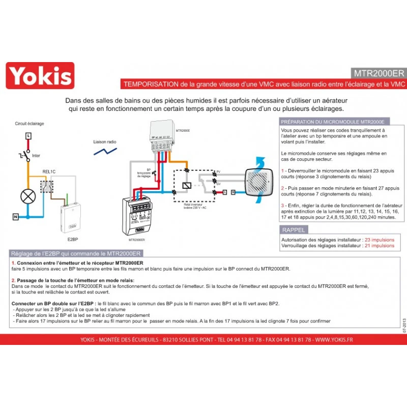 Le télérupteur temporisé modulaire 2000w MTR2000MRP à une double temporisation permet un éclairage ponctuel d’une heure. PRATIQUE : le télérupteur radio modulaire intégrer une led témoin d’état et un BP directement sur le module.
